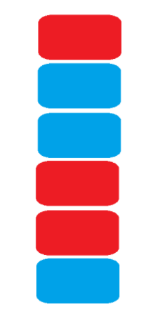 この例の中に、赤色と青色それぞれ3個、数が同じです。どんな動き?